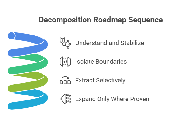 A safe decomposition roadmap usually does not start with “extract user service” or “split billing into microservices.”